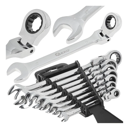 Komplet 8el. kluczy łamanych z grzechotką 8-22mm