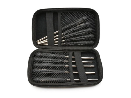 W skład zestawu wchodzi 10 różnego rodzaju kluczy, co czyni ten zestaw uniwersalnym i umożliwia regulację różnego rodzaju gaźników.