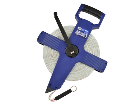 Geodezyjna taśma miernicza 100 m przeznaczona do pomiarów dużych odległości w terenie otwartym jak i pomieszczeniach zamkniętych. Taśma miernicza wykonana z włókna szklanego (fiberglass), charakteryzującego się dużą wytrzymałością oraz odpornością na ścieranie i blaknięcie.