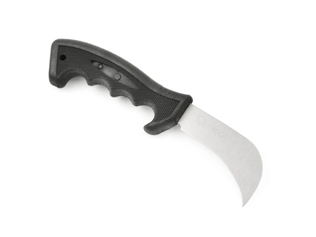 Nóż do cięcia papy oraz wykładzin podłogowych. Wykonany ze stali nierdzewnej o oznaczenie 2Cr13. Specjalne ostrze o sierpowatym kształcie umożliwia sprawne wykonywanie pracy takiej jak cięcie papy lub wykładzin podłogowych. Pewny chwyt narzędzia zapewnia wyprofilowana rękojeść wykonana z wytrzymałego i odpornego na uszkodzenia tworzywa sztucznego.