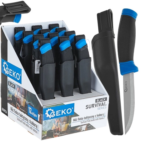 Nóż finka taktyczny 215/105mm z kaburą BLACK SURVIVAL SERIES – kartonik wystawowy (12/48)