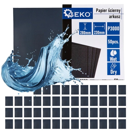 Arkusz papieru ściernego wodnego o wymiarach 230x280mm i gradacji P3000 stworzony z myślą o zapewnieniu doskonałych rezultatów w obróbce różnorodnych powierzchni na sucho i mokro.
