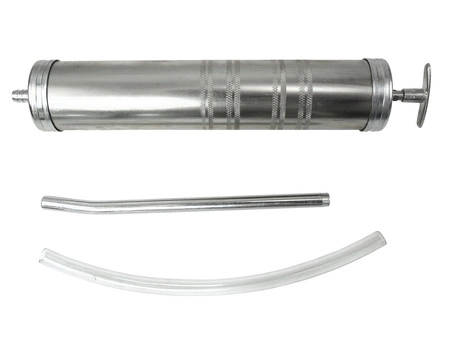 Ręczna strzykawka do oleju o pojemności 500ml. Służy do wstrzykiwania oleju do cieżko dostępnych miejsc tj. skrzynia biegów, mostów napędowych.