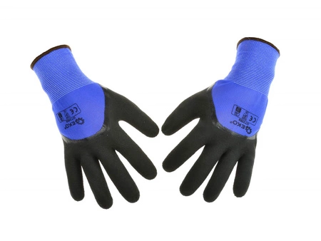 Rękawice robocze wykonane z poliestru. Dodatkowo na całej dłoni powleczone lateksem piankowym, który powoduje że rękawice są bardzo wytrzymałe i nie ograniczają pracy.