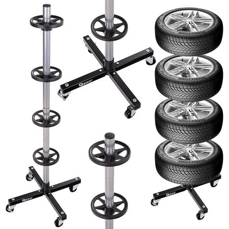 - Trzymanie Kół: Stojak posiada możliwość trzymania 2 lub 4 kół, co czyni go idealnym rozwiązaniem do przechowywania zestawów kół zimowych, letnich lub zapasowych, zapewniając porządek i oszczędzając miejsce w garażu lub warsztacie.