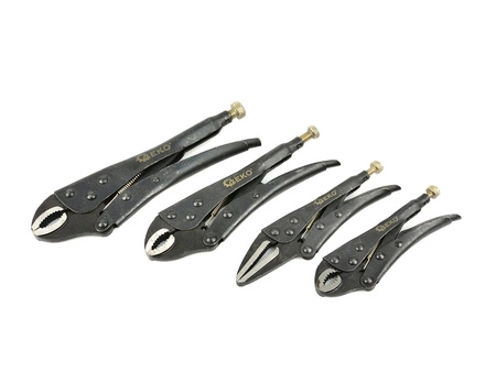 Zestaw udarowych szczypiec zaciskowych morse'a. W skład zestawu wchodzą szczypce w 4 rozmiarach, wykonane zostały przy użyciu wysokiej jakości materiałów. Szczęki ze stali węglowej C45 poddanej odpowiedniej obróbce cieplnej, która charakteryzuje się dużą wytrzymałością oraz znaczną ciągliwością. Rękojeści wykonane ze stali Q235.