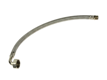 Antywibracyjny wąż o długości 50 cm z kolankiem. Przeznaczony do domowych instalacji wodnych, systemów dystrybucji wody, do urządzeń grzewczych i klimatyzacyjnych. W szczególności zastosowanie znajdują w połączeniu zbiornika hydroforowego z pompą ssącą.