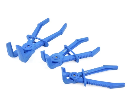 Zestaw szczypiec zaciskowych wygiętych do przewodów elastycznych. Do przewodów o średnicy do 63.5 mm. Za pomocą szczypiec można zapobiec wypłynięciu płynów z przewodów chłodniczych, hamulcowych, itp.