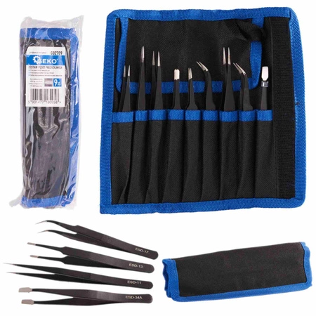 Zestaw pęset precyzyjnych metalowych 9szt (100)
