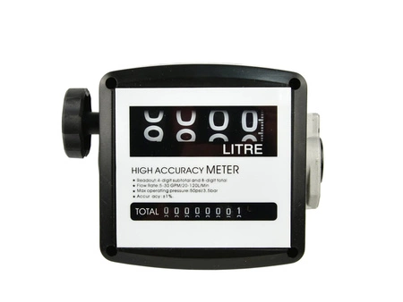 Uniwersalny analogowy 4-cyfrowy licznik przepływowy do dystrybutorów paliwa (mini CPN). Posiada dwa licznik, duży 4-cyfrowy licznik główny oraz licznik 8-cyfrowy pokazujący przepływ całkowity. Wysokiej jakości komponenty użyte przy produkcji licznika, przekładają się na zwiększenie dokładności oraz wytrzymałości względem starczego modelu.