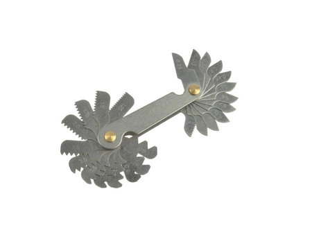 Wskaźnik zarysu gwintów metrycznych to narzędzie miernicze stosowane w celu identyfikacji skoku gwintu.