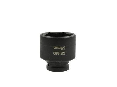 Nasadka udarowa 65mm wykonana z wysokiej jakości stali narzędziowej chromowo-wanadowej (CrV). Posiada gniazdo w rozmiarze 1”, przystosowana do ciężkiej pracy kluczami udarowymi o dużym momencie obrotowym.