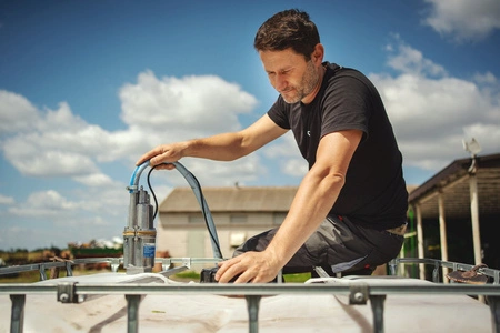 Pompa zatapialna przeznaczona do podawania wody pitnej z dowolnych akwenów oraz otworów wiertniczych w kształcie walca o średnicy ponad 100mm z głębokości do 40m. Przy wykorzystaniu wody do celów spożywczych należy stosować wąż z gumy lub masy plastycznej. Pompa znajduje zastosowanie także przy podlewaniu działek rekreacyjnych, sadów, ogrodów. Dopuszczalny czas pracy ciągłej nie może przekraczać 60 minut, po którym należy przerwać pracę na ok. 30 minut. Przepompowana woda powinna być czysta (max. średnica cząstek 0,1 mm) oraz mieć temperaturę pokojową (max 35°C, min 1°C ) Pompa charakteryzuje się maksymalnym bezpieczeństwem i prostą obsługą. Urządzenie o wysokiej wydajności.