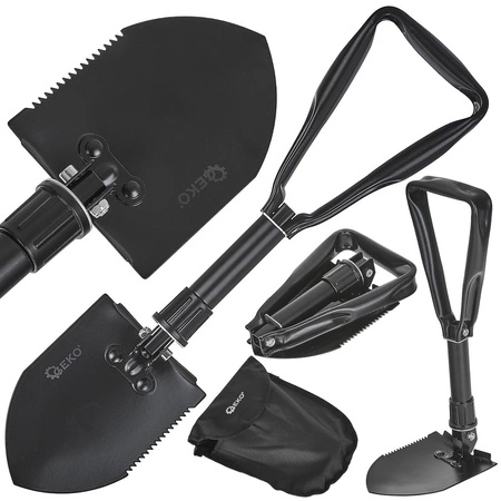 Kompaktowa składana konstrukcja: Po złożeniu saperka ma jedynie 19,5 cm długości, co sprawia, że zmieści się w plecaku, samochodzie lub przy pasku, nie zajmując dużo miejsca.