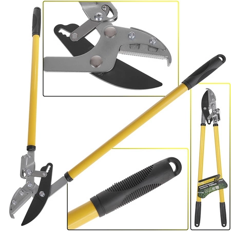 Zastosowany mechanizm przekładniowy znacznie zmniejsza ilość siły potrzebnej to przecięcia gałęzi.