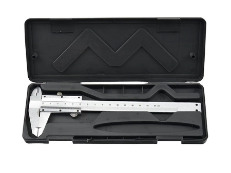 Suwmiarka o długości pomiarowej 150 mm. Doskonale sprawdzi się w przemyśle, podczas obróbki metali, drewna itp.
