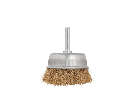 Szczotka druciana czołowa to narzędzie do czyszczenia i polerowania metali, do wiertarek i szybkobieżnych urządzeń napędzanych elektrycznie i pneumatycznie. Szczotka druciana czołowa jest wykonana z wysokiej jakości mosiężnego drutu, który nie rysuje i nie uszkadza metalu. Falowane druty zapewniają doskonałą skuteczność i wytrzymałość podczas pracy. Falowane druty doskonale docierają do trudno dostępnych miejsc i usuwają wszelkie zanieczyszczenia, takie jak rdza, stara farba, lakier czy zadziory. Szczotka druciana czołowa pasuje do każdej wiertarki dzięki trzpieniowi o średnicy 6mm. Dzięki średnicy 50 mm możesz szybko i łatwo oczyścić duże powierzchnie metalowe.