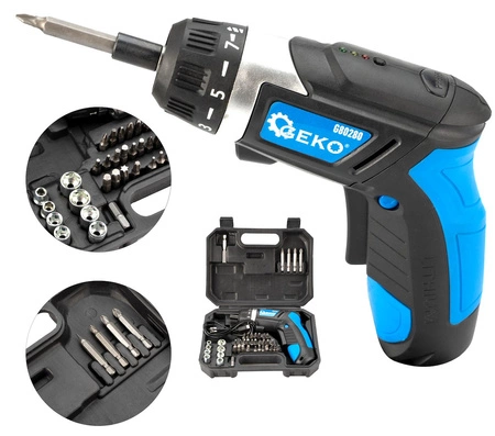 Kompaktowa, lekka i poręczna wkrętarka. Doskonale nadaje się do montażu mebli, skręcania szafek, montażu elektroniki lub dokręcania luźnych śrub. Może być używana w zaciemnionych pomieszczeniach dzięki wbudowanej diodzie LED.