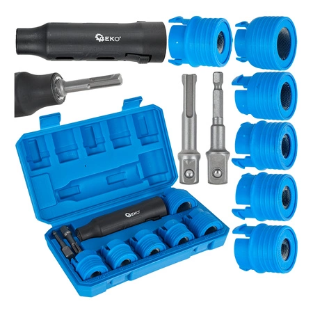 - Dwa adaptery: do wkrętarki (HEX 1/2") oraz do młoto-wiertarek SDS-PLUS (1/2")