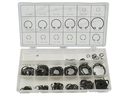 Zestaw 300 pierścieni wewnętrznych Seeger'a w rozmiarach 3 - 32mm.